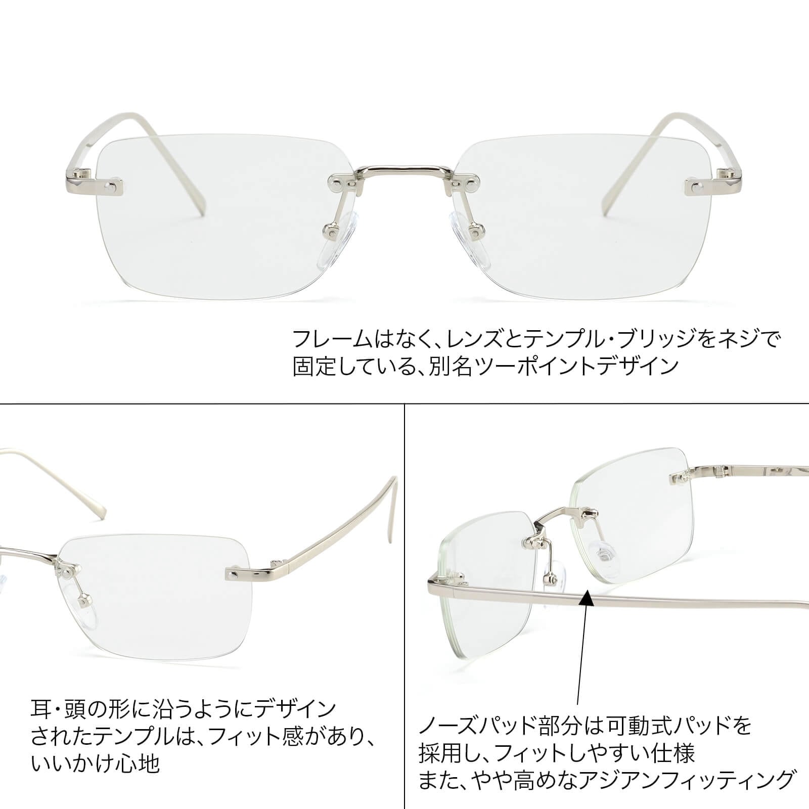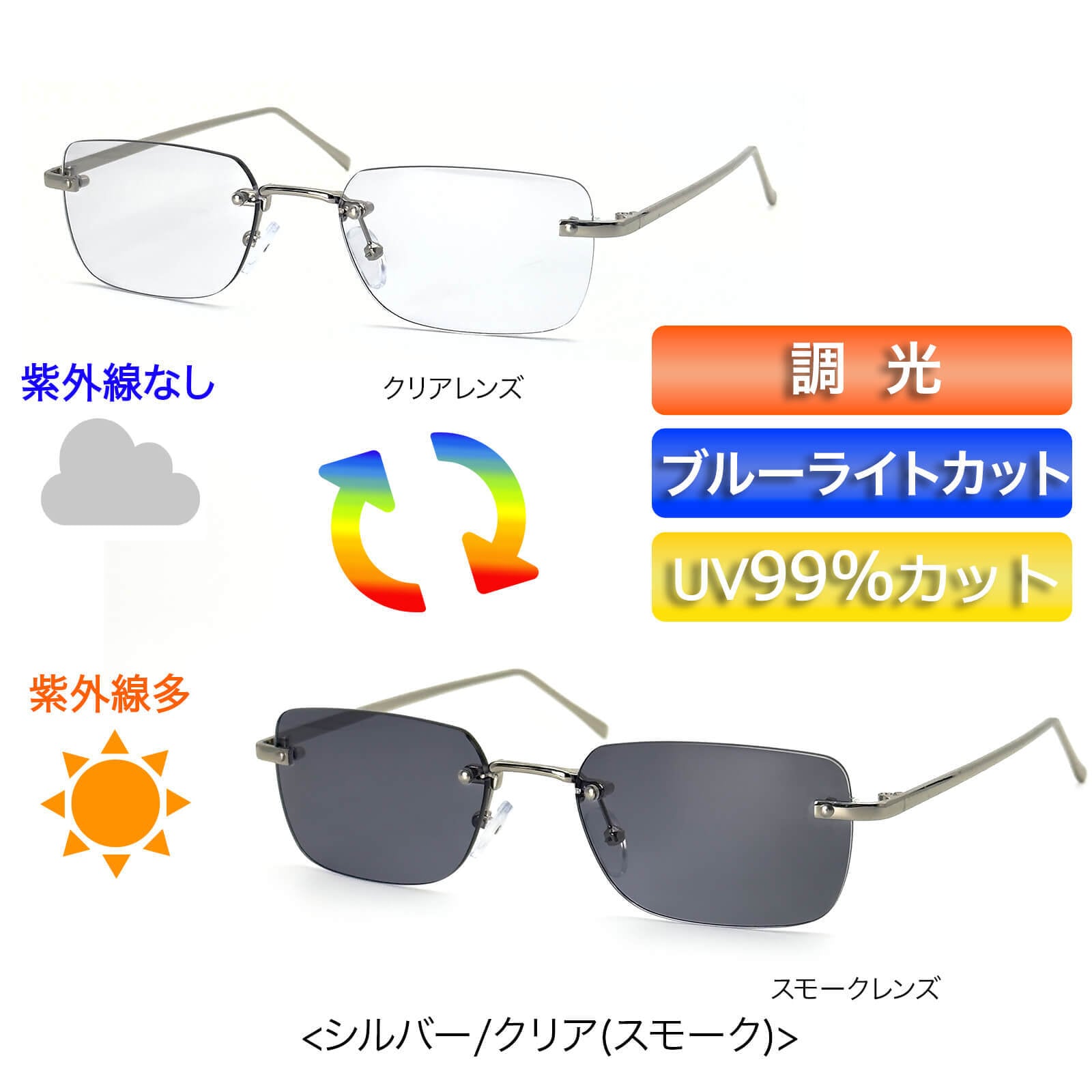 (調光)リムレススクエアメタルサングラス/メガネ